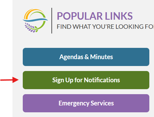 On the main page of the City’s website, scroll down to Popular Links and click on Sign Up for Notifications