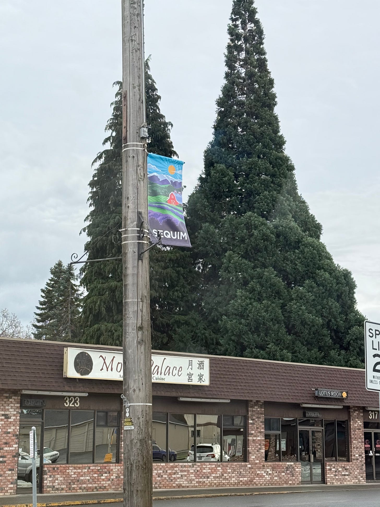 This was the view on Saturday, January 31, 2026, while driving out of Sequim Village Marketplace: